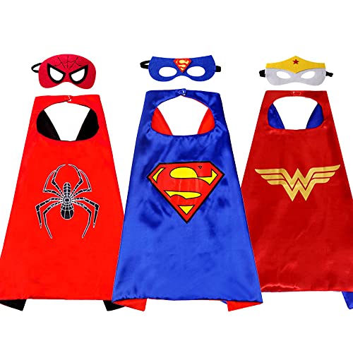 Set Di 3 Costumi Da Supereroi Per Bambini, Costumi Da Superero Con Maschere, Faccia Mantello Supereroi, per Bambini e Bambine Regali Di Compleanno Costumi Carnevale 3 Ai 12 Anni