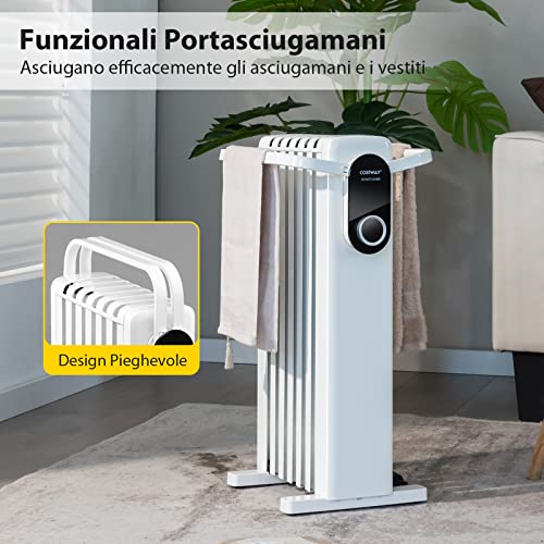 COSTWAY 1500W Radiatore ad Olio Basso Consumo, 3 Livelli di Riscaldamento 7 Elementi, Protezione Surriscaldamento e Ribaltamento, Portasciugamani e Ruote Smontabili Integrate, Silenzioso (Bianco)