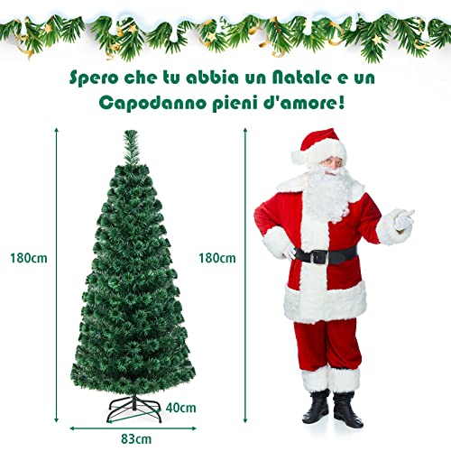 COSTWAY Albero di Natale Illuminato Albero di Abete Artificiale, con Fibra Ottica Cambia Colore, Verde (180cm)