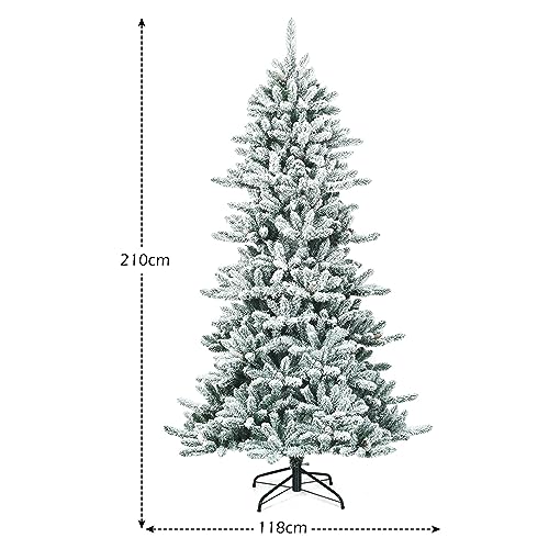COSTWAY Albero di Natale Innevato 210 cm, Albero di Natale con 1108 Rami Densi, Pigne Bianche e Base in Ferro, Albero di Natale Artificiale e Realistico per Casa, Negozio e Ufficio
