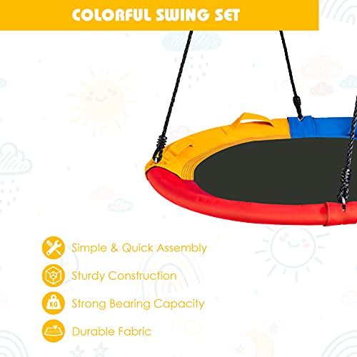 COSTWAY Altalena a Nido per Bambini, Altalena Rotonda con Corde Regolabili in Altezza, Cuscino e Maniglia, Ideale per Cortile e Giardino, Capacità di Carico 150 kg