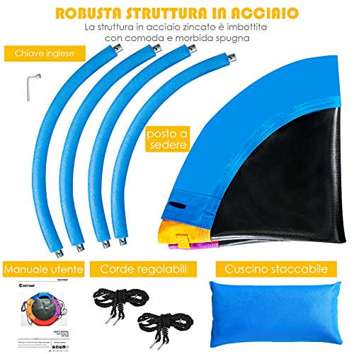 【Cuscino Extra e Maniglie Laterali】 Rispetto ad altri prodotti, la nostra altalena a disco ha un cuscino extra e 4 maniglie laterali. Il cuscino è attaccato all'altalena con la chiusura a strappo così si può staccare per lavarlo. Puoi impugnare le maniglie laterali per aumentare la sicurezza e dondolarti.
