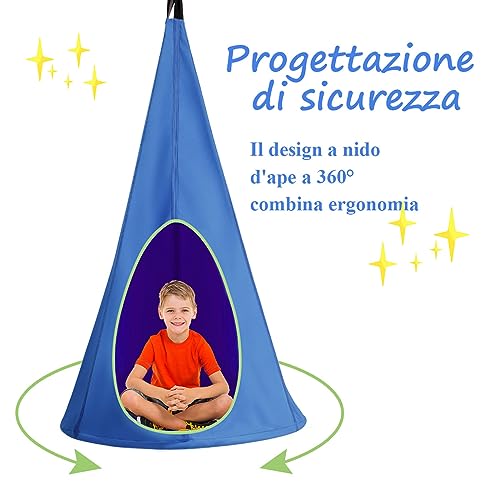 COSTWAY Amaca per Bambini Amaca Sedia Sospesa, Kit Completo, Perfetta per Interno Esterno, fino a 115kg (Blu)