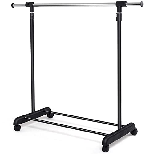 COSTWAY Appendiabiti Estendibile Porta Abiti Singolo Regolabile in Altezza e Lunghezza, con Ripiano e Ruote, in Acciaio Inox