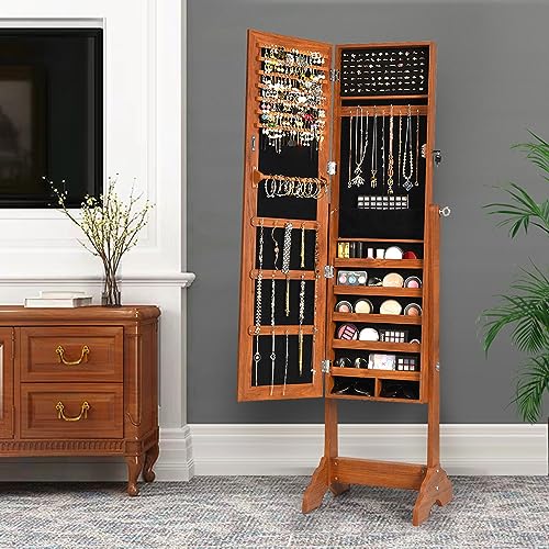 COSTWAY Armadio per Gioielli, Armadio Portagioie con Specchio a Figura Intera, Organizer Gioielli Bloccabile, 3 Inclinazioni Regolabili, 40 x 38 x 155 cm