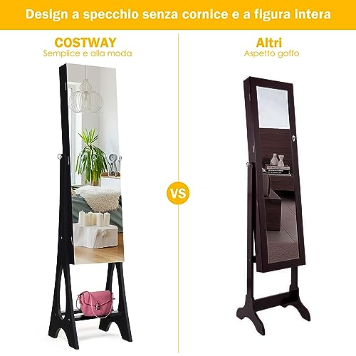 COSTWAY Armadio per Gioielli con 12 LED, Armadio per Gioielli con Specchio a Figura Intera, con Struttura Resistente, Organizer per Tutti i Tipi di Gioielli (Nero)