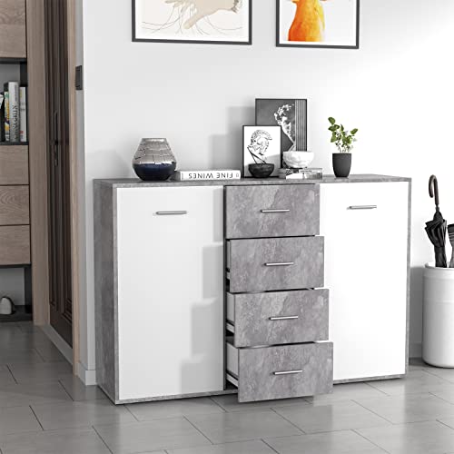 COSTWAY Armadio di Legno con 4 Cassetti e 2 Ante, Credenza Cassettiera di Stoccaggio con Ripiani Regolabili, Mobile Comò per Salone Camera da Letto Ingresso,123 x 34,5 x 82 cm (Grigio)