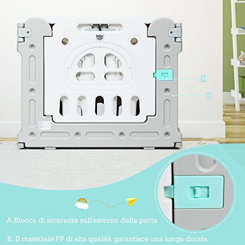 【Combinabile liberamente in varie forme】Il nostro box per bambini ha 14 pannelli combinabili liberamente. Aumentando o diminuendo il numero dei pannelli, avrai una forma quadrata, rotonda o rettangolare in cui far giocare i bambini.