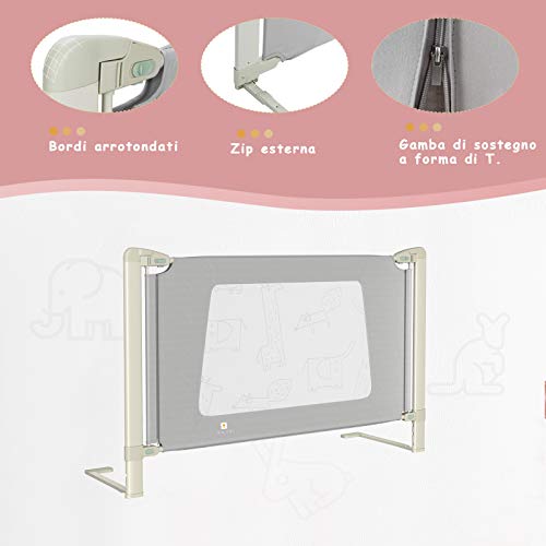 COSTWAY Barriera Letto 150 cm, Sponda di Sicurezza per Bambini, Altezza Regolabile, Spondina Letto Anti Caduta, Adatto a bambini da 0-3 anni (150 cm, Grigio)