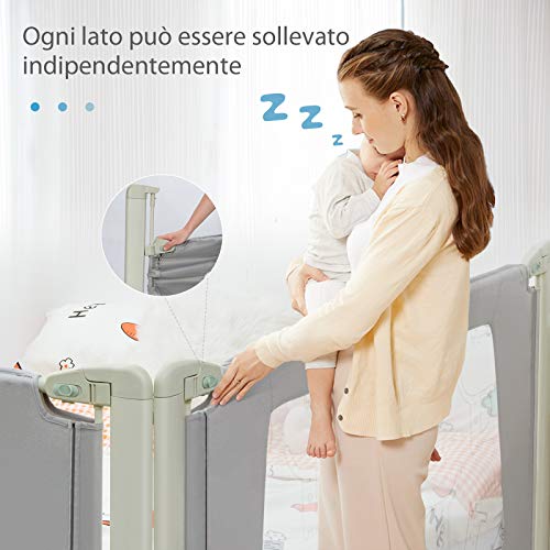 COSTWAY Barriera Letto 180 cm, Sponda di Sicurezza per Bambini, Altezza Regolabile, Spondina Letto Anti Caduta, Adatto a bambini da 0-3 anni (180 cm, Grigio)