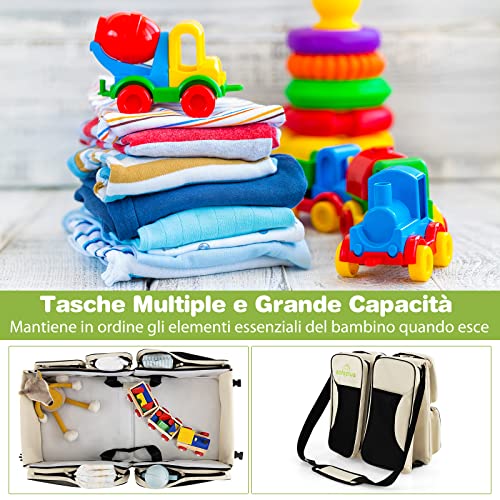 【Facile da mantenere e da pulire】Lo strato in PE sul fondo della borsa è facile da pulire. È possibile rimuovere il fasciatoio e pulirlo con un panno umido. Se volete, potete anche decidere di lavarla a mano e risparmiare tempo.