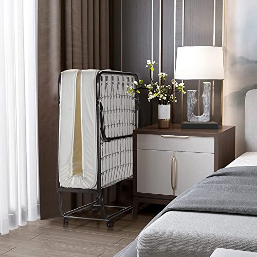 COSTWAY Brandina Pieghevole con Materasso, in Memory Foam da 10cm, Letto Portatile con Struttura in Metallo e 4 Ruote, Portata Massima 130kg, 190x80x39cm