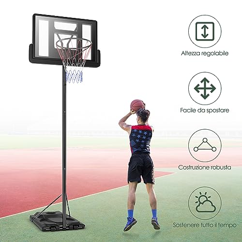 COSTWAY Canestro da basket da Esterno ed Interno, Stand di Basket Portatile con Altezza Regolabile, Tabellone Resistente, Rete di Nylon e Base Riempibile, Ideale per Adolescenti e Adulti