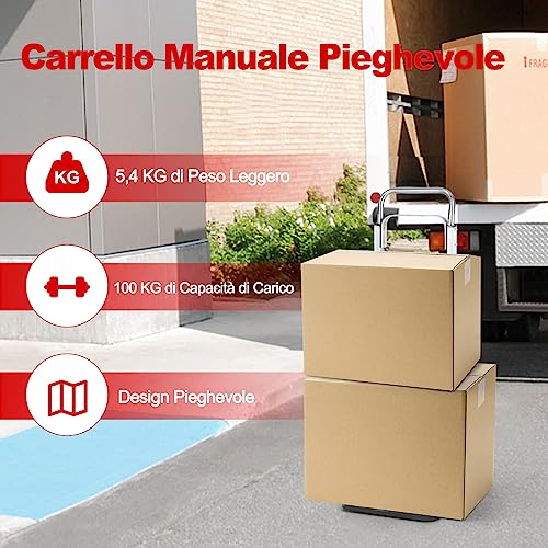 COSTWAY Carrello a Mano in Alluminio Pieghevole e Portatile, Carrello Portapacchi con Manico Telescopico Pieghevole e 2 Ruote in Gomma, Capacità di Carico 100 kg, per Casa, Giardino e Magazzino