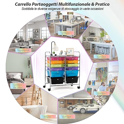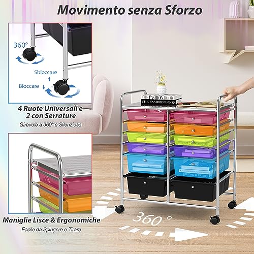 COSTWAY Carrello con 12 Cassetti con Ruote, Carrello di Stoccaggio Multiuso con Ampio Spazio di Archiviazione, Ideale per Ufficio e Domestico, 73,5 x 37 x 63 cm (Colorato trasparente)