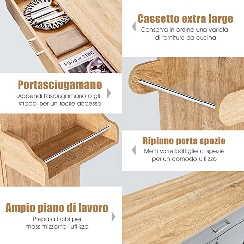 【Salva Spazio】Il cassetto e l'armadietto sono perfetti per conservare vari utensili e mantenerli al sicuro. Inoltre, contiene un portasciugamano e un ripiano delle spezie.