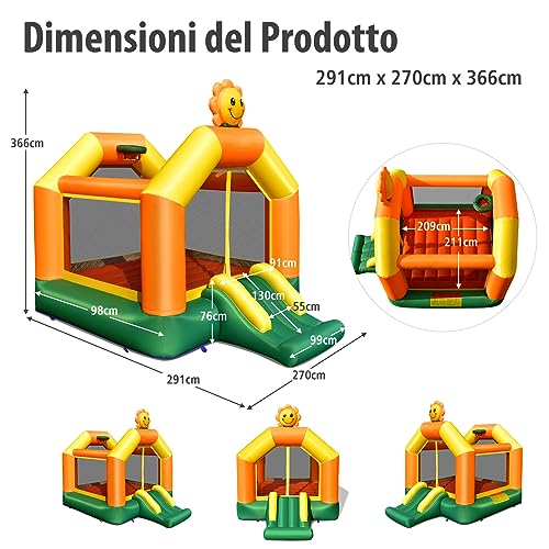 【Regalo perfetto per i bambini】Con il disegno di girasole e i colori vivaci, la casa gonfiabile è il regalo ideale per far felici i bambini. Inoltre, si può usare sia all'interno che all'esterno come cortile, prato, parco divertimenti, ecc.