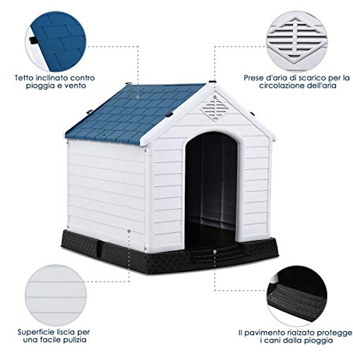 COSTWAY Cuccia per Cani da Esterno Impermeabile, Canile Villa per Cani in PP Resina, Bianco/Blu (87,7x78,5x81,5cm)