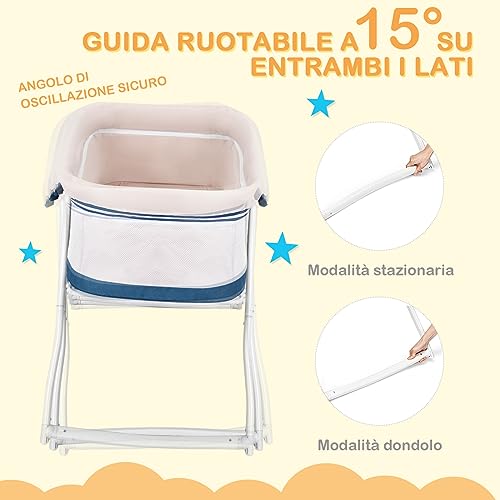 【Funzione di oscillazione】 Le parti del telaio dei piedi della culla possono ruotare, trasformando un lettino da viaggio in un letto a dondolo. Grazie al dolce movimento, il bambino si addormenta senza problemi.