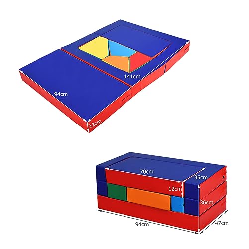 COSTWAY Sofa Divano da Gioco per Bambini, Gioco Puzzle Componibile 4 in 1, Morbido e Impermeabile, 141 x 94 x 12 cm (Blu-Rosso)