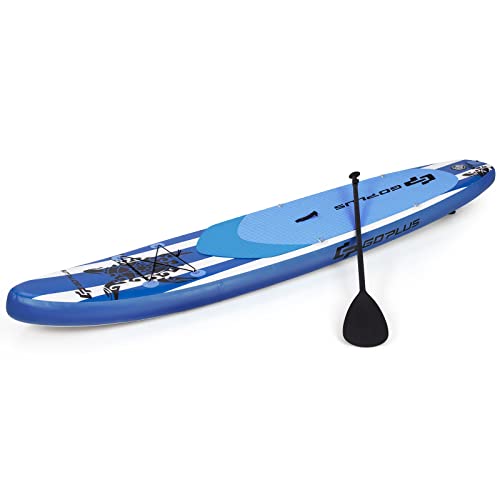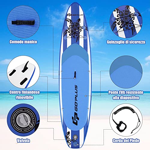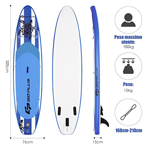 COSTWAY SUP Gonfiabile 320 cm/325 cm, Stand Up Paddle Gonfiabile con 9 Anelli, Zaino, Pompa, Pagaia Regolabile, Pinne, Leash e Kit di Riparazione, Portata 150 kg (325 x 76 x 15 cm, stile 1)