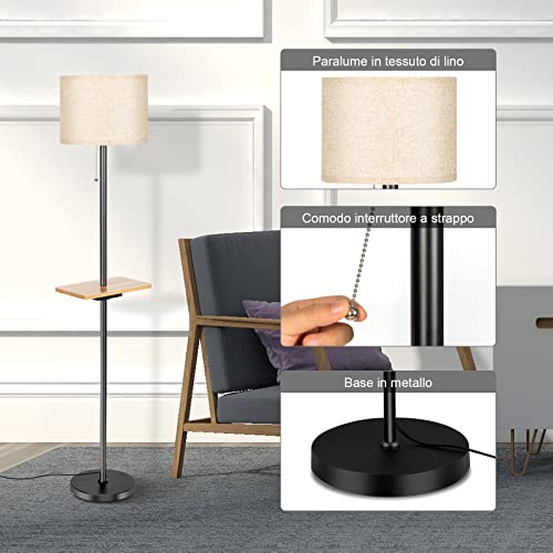 【Porta USB e vassoio】La nostra lampada a stelo ha 2 porte USB per poter ricaricare il cellulare e altri dispositivi. Inoltre, il vassoio in legno di gomma è spazioso per riporre diversi oggetti (non più di 1 kg) come bicchieri, chiavi e asciugamani.