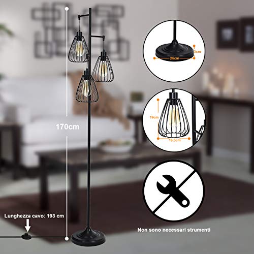 【Luce intensa e atmosfera calda】La nostra lampada da terra ha 3 portalampada E27 (lampadine non incluse) e si possono inserire le lampadine a seconda della necessità. Di notte, la lampada emetterà una luce intensa e creerà un'atmosfera calda.