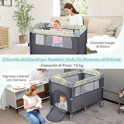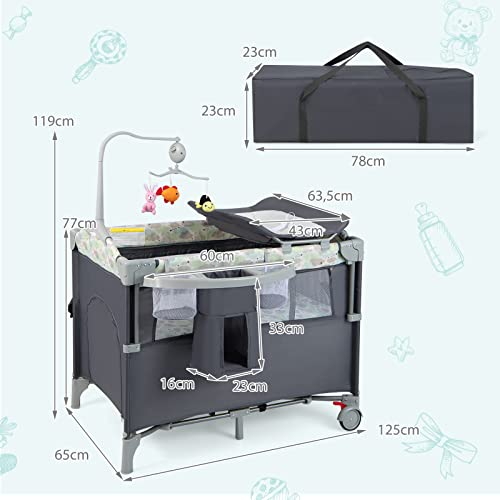 COSTWAY Lettino Culla da Viaggio per Neonati e Bambini, Box Portatile Pieghevole, con Materassino Ruote e Borsa, 125 x 65 x 119 cm (Grigio)