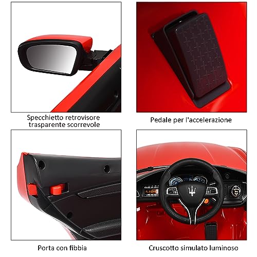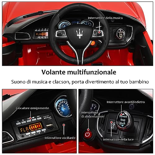 COSTWAY Maserati Macchina Cavalcabile 12 V, Macchina Elettrica Giocattolo con Telecomando, Funzione avvio Lento e MP3, Velocità: 3-4,5 km/h (Rosso)