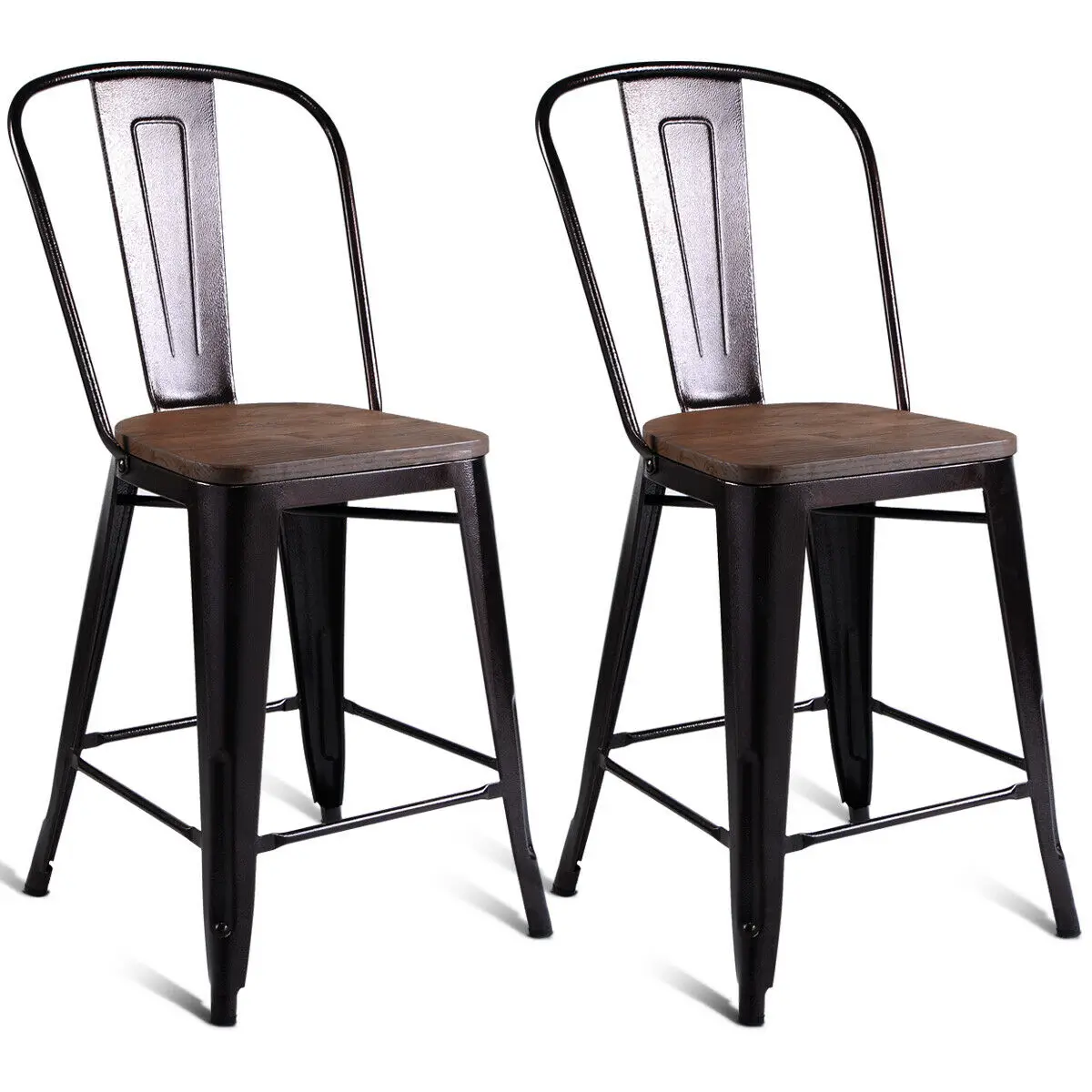 Costway 2 PC Metal Wood Counter Stool Kitchen Dining Bar Chairs