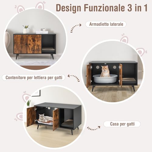 【Mobile Chiuso e Adatto agli Animaletti】Un grande scomparto a doppia anta è progettato per nascondere la lettiera del gatto e per evitare la diffusione degli odori sgradevoli e una stanza disordinata. Puoi anche mettere una cuccia per gatti all'interno del mobile per creare una comoda area di riposo. I 3 grandi fori assicurano un'eccellente ventilazione e migliorano la luminosità interna.