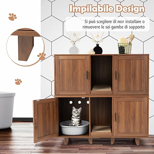 COSTWAY Mobile per Lettiera per Gatti 120 x 52 x 65 cm, Casetta per Gatti con 2 Ante, Fori, Tiragraffi e Gambe Staccabili, Mobile Versatile e Moderno per Salotto (Marrone)