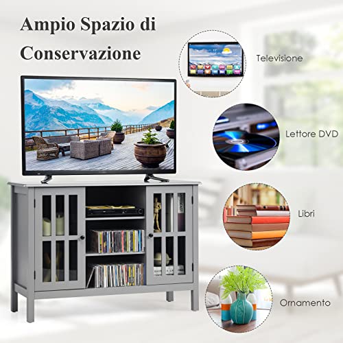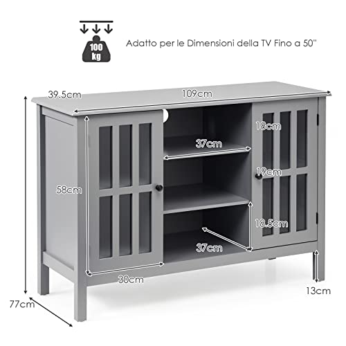 COSTWAY Mobile Porta TV di Legno, per TV Fino 50", Mobile TV con 2 Ante e 3 Mensole, Armadio Multiuso per Salone Camera da Letto, 109 x 39,5 x 77 cm, Portante 100 kg, Grigio