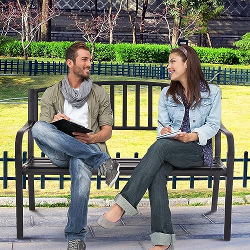 【Mobile da Esterno】Realizzata con lo schienale a strisce, questa panchina in acciaio ha una lavorazione eccellente che aggiunge un tocco semplice al giardino, cortile, portico, ecc. Il design classico si abbina a ogni ambiente.