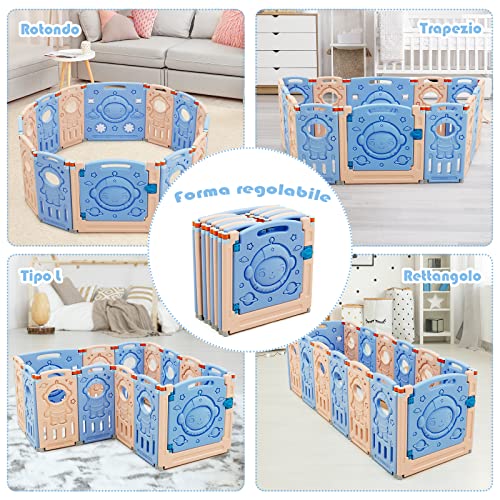 COSTWAY Box Pieghevole per Bambini, Recinto Portatile con 14/16 Pannelli, Centro Attività con Forma Regolabile, per Bambini 6-36 Mesi (14 Pannelli)