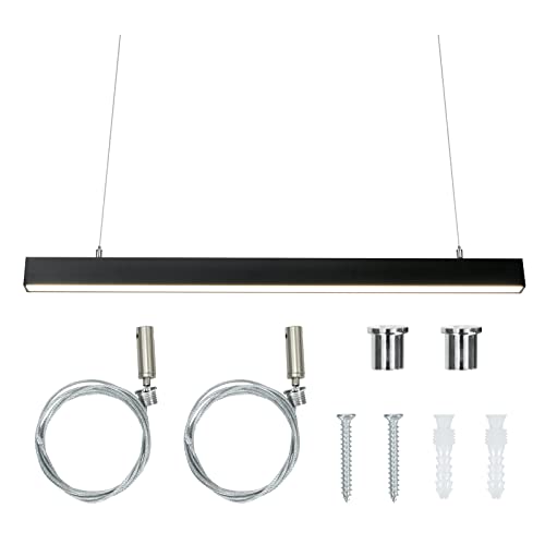 【Materiale di alta qualità】Con la custodia in alluminio rinforzato, la plafoniera lineare resiste alla ruggine, alla rottura e alla deformazione. I chip LED interni sono realizzati con materiali di ottima qualità che garantiscono una lunga durata. Inoltre, i 2 cavi per appenderla sono molto resistenti e reggono il peso di tutta la plafoniera.