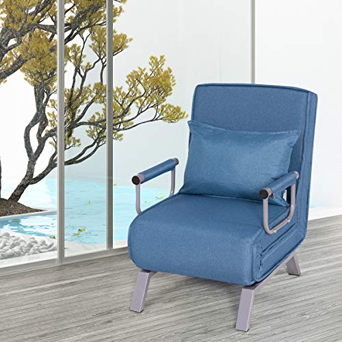 COSTWAY Poltrona Letto Singolo, Poltroncina Pieghevole, Schienale Regolabile per Soggiorno, 83x59x78,5cm, Metallo, Lino, Spugna (Blu)