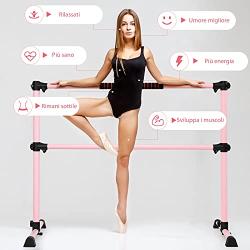 COSTWAY Sbarra Danza Classica per Casa Portatile, Sbarra da Balletto Doppia Regolabile in Altezza con Cuscinetti Antiscivolo e Base Girevole, Ideale per Allenamento Stretch, Portata 50 kg (Rosa)
