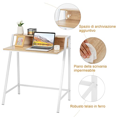 COSTWAY Scrivania per Computer con 2 Livelli, Scrivania da Gaming con Alzata per Monitor, per Casa e Ufficio, Capacità di Carico 40 kg, 80 x 50,5 x 90,5 cm (Naturale)