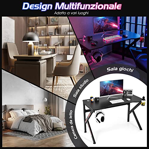 COSTWAY Scrivania da Gaming 110 cm, Tavolo Computer a Forma di K con Porta Bicchiere e Gancio per Cuffie, Postazione Gaming Ergonomica per Casa e Ufficio