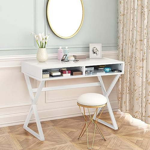 【Superficie spaziosa】Questa scrivania ha una superficie molto spaziosa e comoda su cui lavorare. Ha anche 2 cassetti in cui riporre cosmetici o libri per evitare di avere tutto in disordine. Avere la scrivania e la stanza in ordine contribuisce alla salute fisica e mentale.