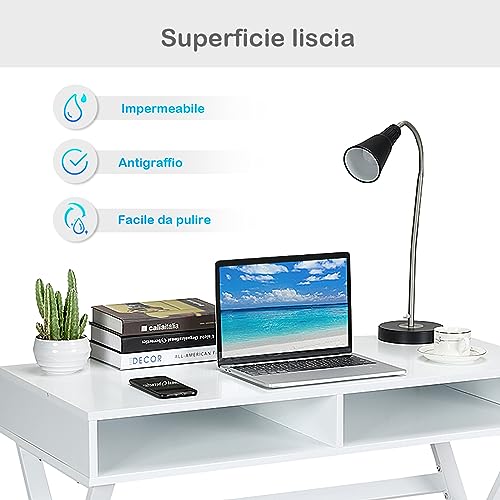 COSTWAY Scrivania con 2 Scomparti, Tavolo Moderno per Studio e Ufficio, Bianco Legno, 101 x 48 x 78,5 cm