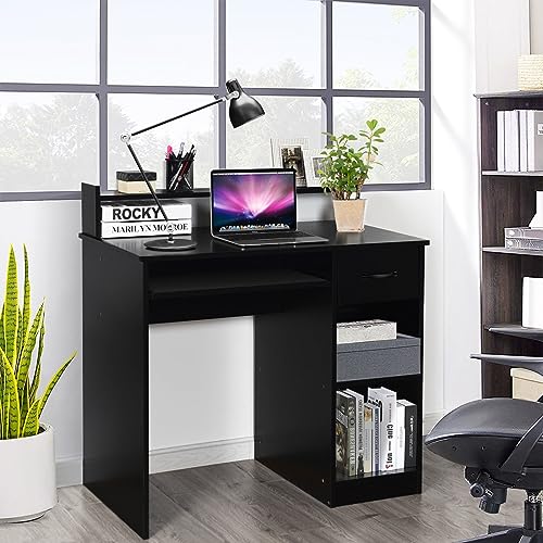 COSTWAY Scrivania da Studio con Cassetti, Tavolo Porta PC per Computer Moderno, con Ripiani, Legno (Nero)