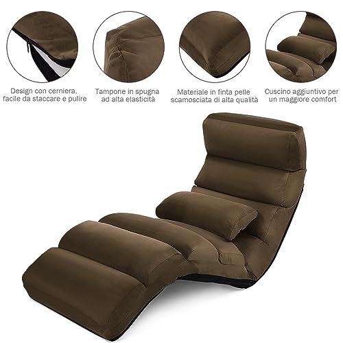 COSTWAY Sedia Pieghevole da Pavimento Portatile, Divano Imbottito, Regolabile in 5 Posizioni, Supporto per la Schiena, Ideale per Rilassarsi Leggere (Marrone)