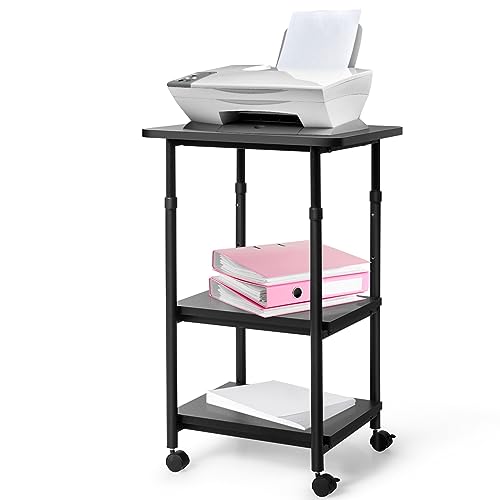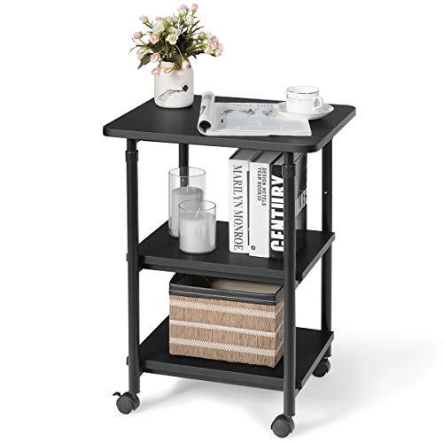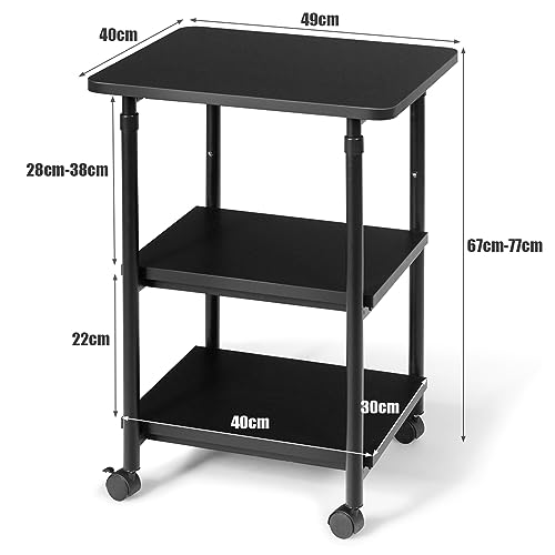 COSTWAY Supporto per Stampante, Carrello Stampante con Ruote Girevoli a 360⁰, con Altezza Regolabile e Design Rimovibile, Superficie Ampia e Liscia, Di Legno e Acciaio, 49 x 40 x 67/77 cm (Nero)