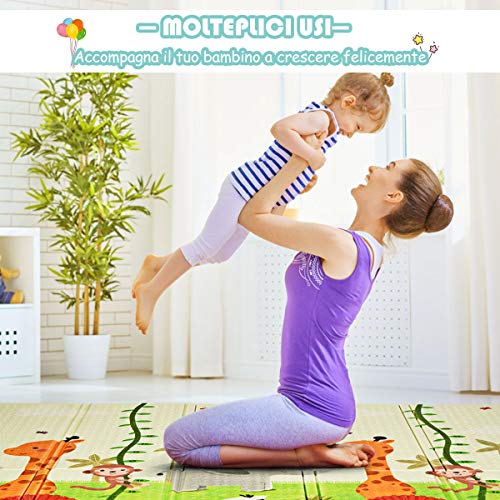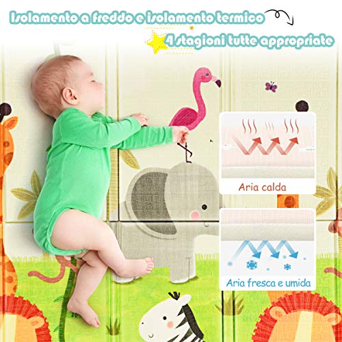 COSTWAY Tappetino da Gioco per Bambini, Tappetino Pieghevole, Tappetino Schiuma XPE Antiscivolo, 200 x 180 x 1,4 cm (Zoo)