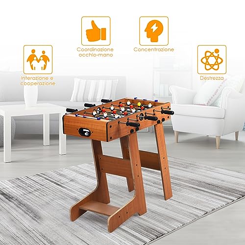 COSTWAY Tavolo Calcio Balilla Pieghevole in Legno, Calcetto da Tavolo Gioco per Bambini, Partita di Calcio, con 2 Palline e Segnapunti, per Adulti e Bambini
