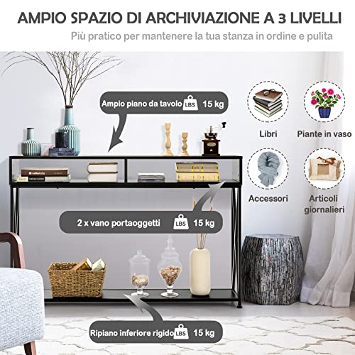 COSTWAY Tavolo Consolle a 2 Livelli, Tavolo da Ingresso con Telaio di Metallo, Ripiani e Piedini Regolabili, Tavolo Multiuso e Moderno per Salotto, Ingresso e Corridoio, 120 x 23 x 79 cm (Nero)