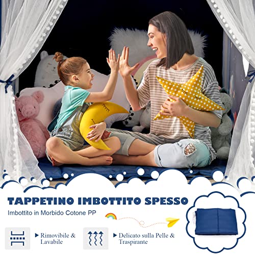 COSTWAY Tenda da gioco per Bambini, Casetta per Bambini da Interno con Tappetino Imbottito Rimovibile, Ideale per Bambini e Bambine, 105 x 121 x 137 cm (Blu)