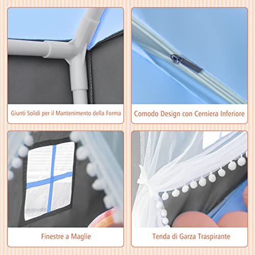 【Area Spaziosa per Giocare】La nostra casetta giocattolo per bambini misura 105 x 121 x 136 cm e offre un ampio spazio per ospitare 4 bambini alla volta. Non solo possono sognare a occhi aperti, fare un riposino, leggere libri o giocare con gli amici, ma anche divertirsi con i genitori. Inoltre, la tenda si può usare per feste all'esterno o picnic.